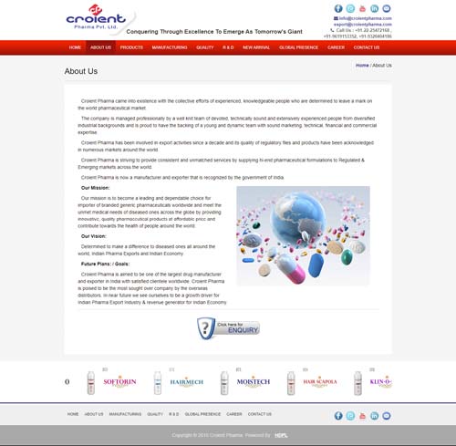 Croient Pharma was started by a group of intelligent, experienced people who wanted to make a name for themselves in the world pharmaceutical market. The company is run professionally by a tight-knit group of dedicated, technically savvy, and highly experienced people from various industries. The company is also proud to have the support of a young, energetic team with solid marketing, technical, financial, and business skills.