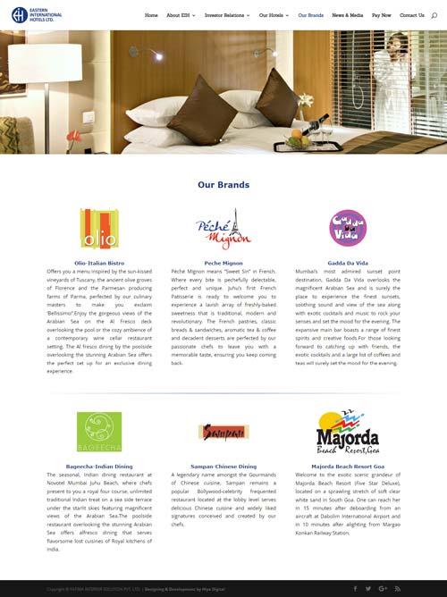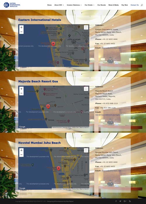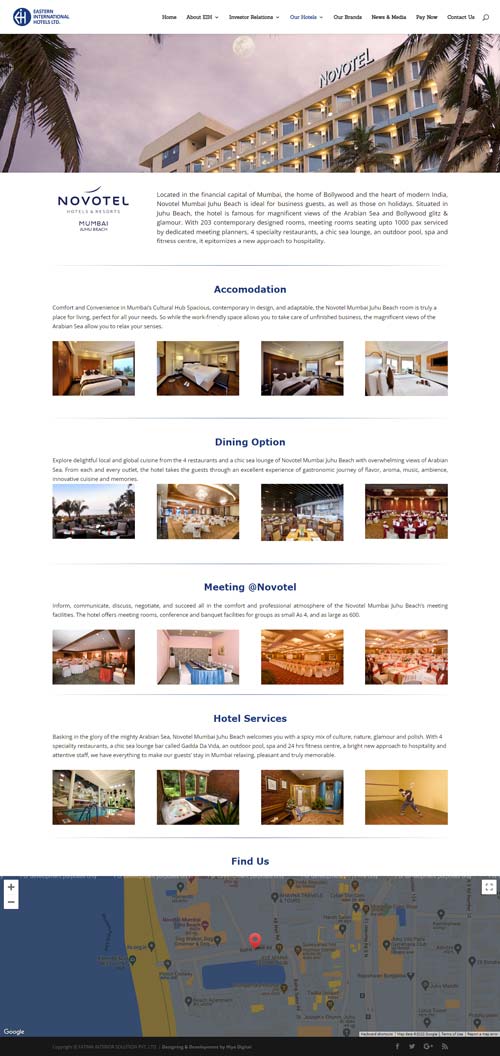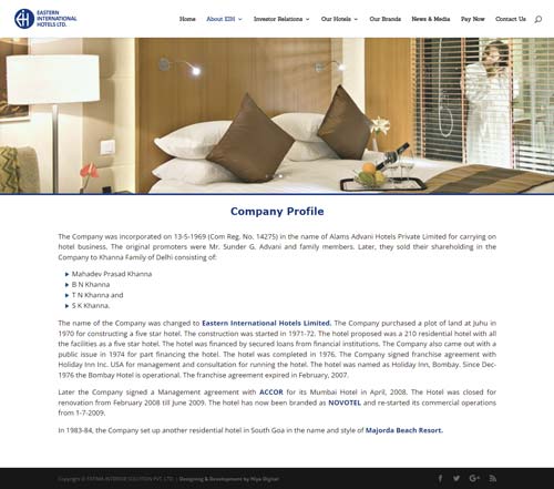 In April 2008, the company inked a management arrangement with ACCOR for its Mumbai hotel. Between February 2008 and June 2009, the hotel was closed for renovations. The hotel has been rebranded as NOVOTEL and reopened for business on July 1, 2009. In 1983-84, the company opened another residential hotel in South Goa called Majorda Beach Resort.