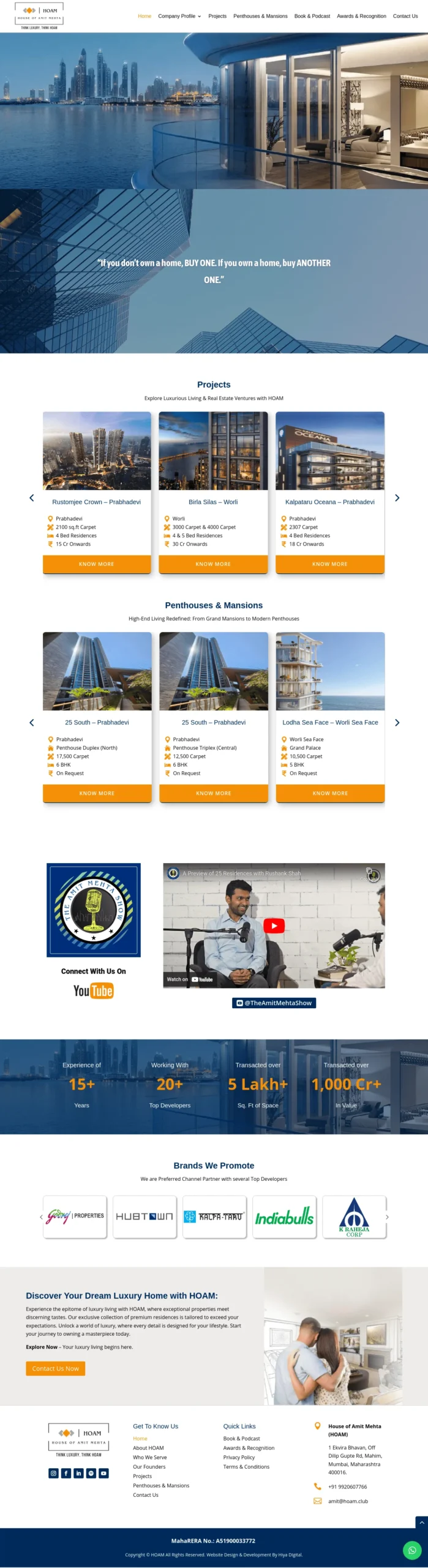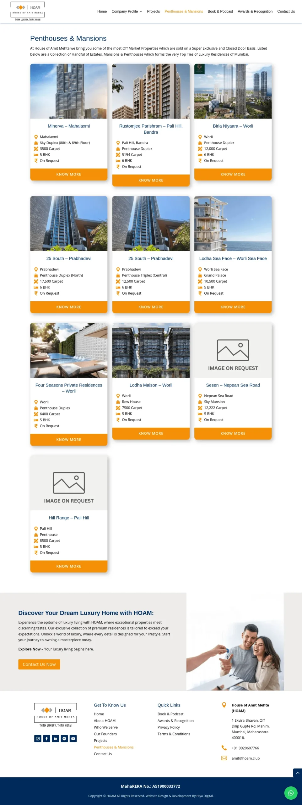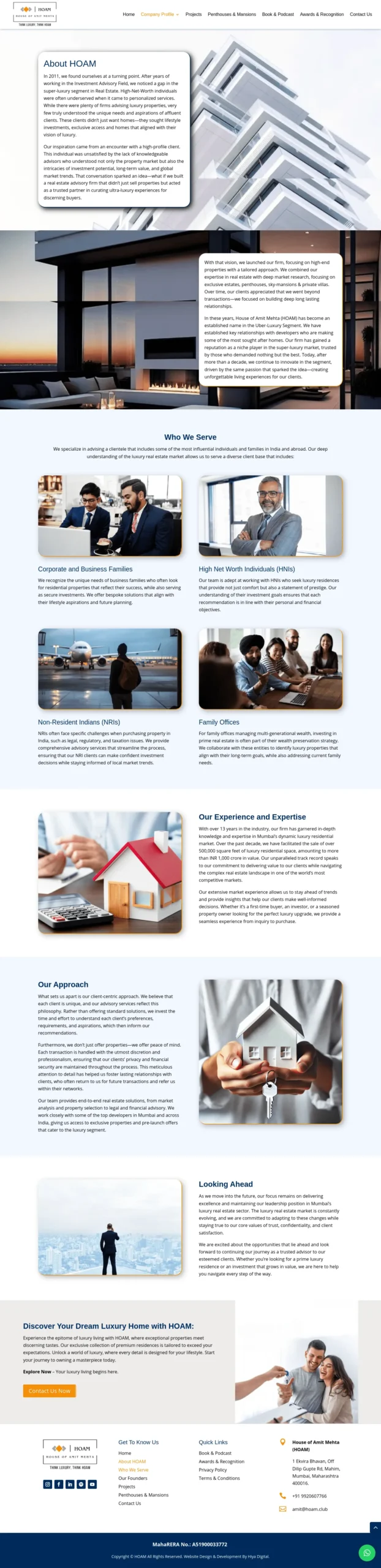In 2011, House of Amit Mehta (HOAM) saw a unique opportunity in the super-luxury real estate sector. After years in Investment Advisory, the team recognized that High-Net-Worth individuals were underserved by traditional firms that didn’t fully understand their desire for lifestyle investments—properties that reflect their luxury ideals.