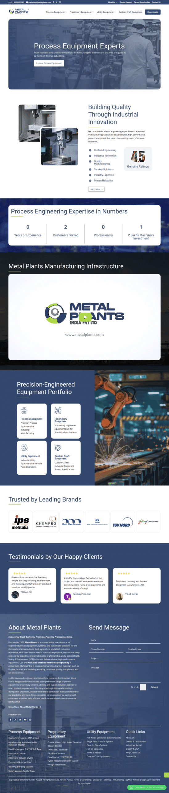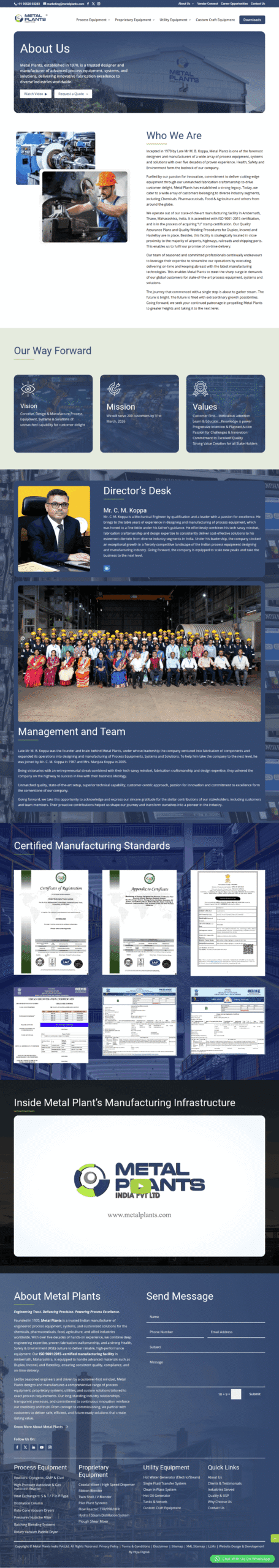 Focused on innovation, quality manufacturing, and long-term client partnerships, Metal Plants emphasizes precision engineering, strict quality standards, and advanced fabrication technologies. The platform reflects the company’s commitment to dependable performance, customized industrial solutions, and delivering high-performance equipment that supports modern process industries worldwide.